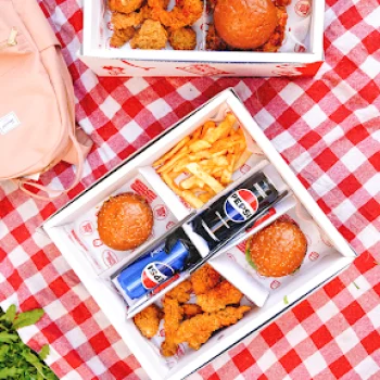 Devasa burger geldi patatesler iyi pişmişti içecek buz gibiydi daha ne isterim elinize sağlık